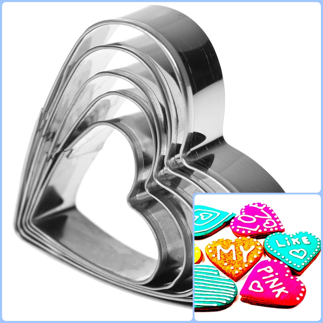 Вырубки для печенья, пряников, шоколада, мастики или марципана в форме сердца. Изготовлены из нержавеющей стали.