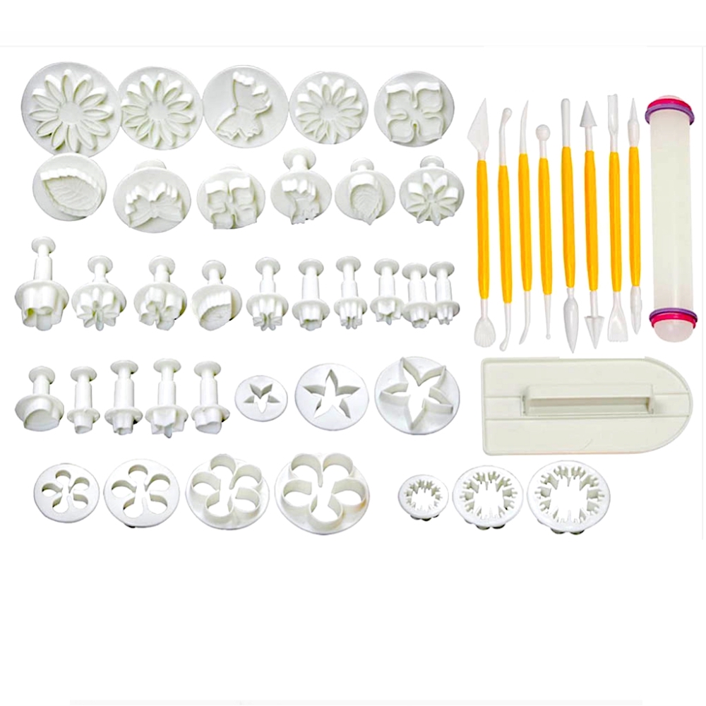 Большой набор вырубок, плунжеров и инструментов для резьбы, моделирования и декора тортов сахарной мастикой - это отличный подарок как начинающему кондитеру так и профессиональному декоратору тортов.