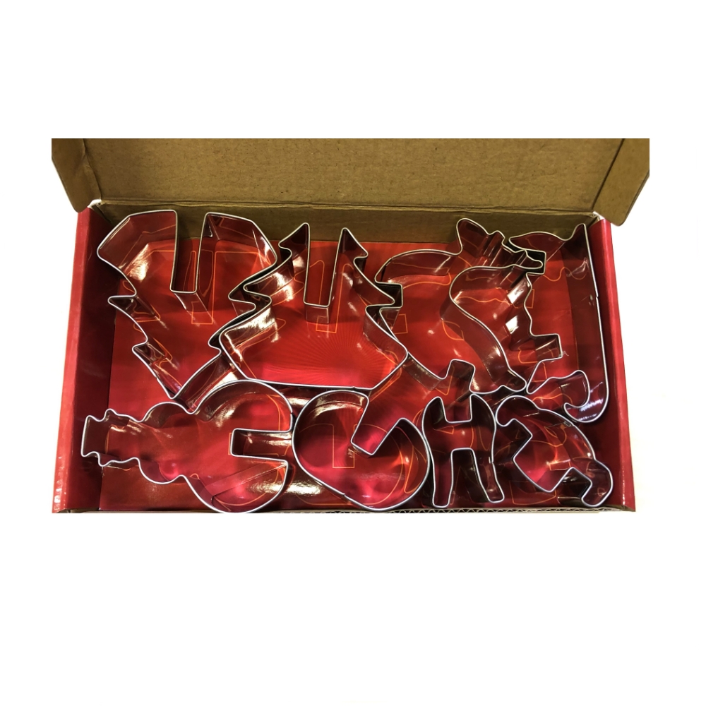 Вырубка для создания пряничных фигурок: ёлка, снеговик, олень и сани, набор 8 фигур.