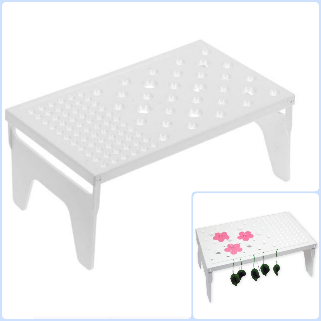 Столик имеет отверстия разного диаметра, что позволит разместить ваши изделия различных размеров, избегая соприкосания лепестков и бутонов.