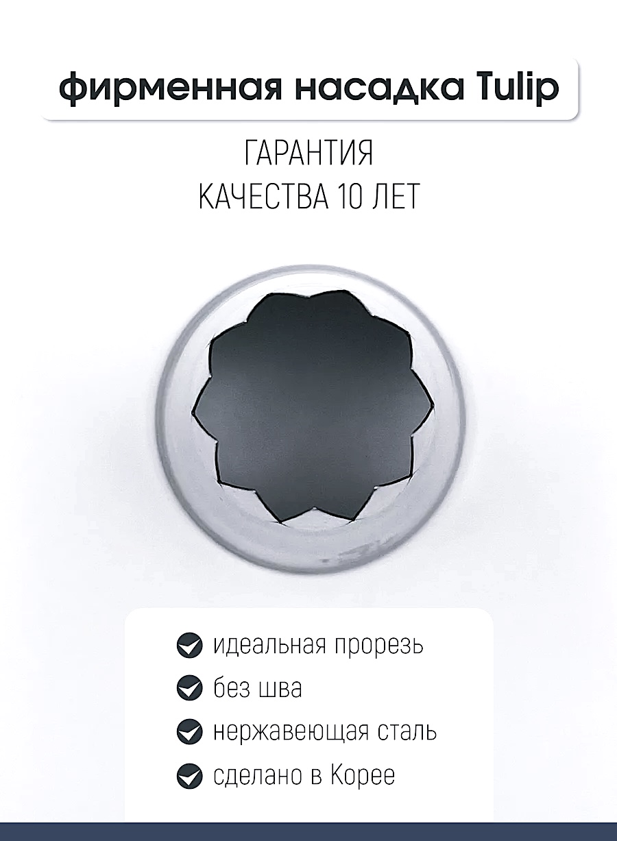 Все насадки штампованы номером и Tulip™.