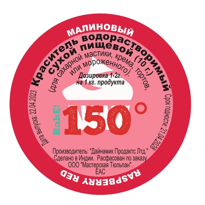 Краситель пищевой сухой водорастворимый МАЛИНОВЫЙ 150º Bake!™ - купить в Мастерской Тюльпан. Гарантия качества. Быстрая доставка. Дозировка 1 - 2 г. на 1 кг. продукта. Скидка на первый заказ и постоянным покупателям 5%. Ищите промокод для скидки на нашем сайте.