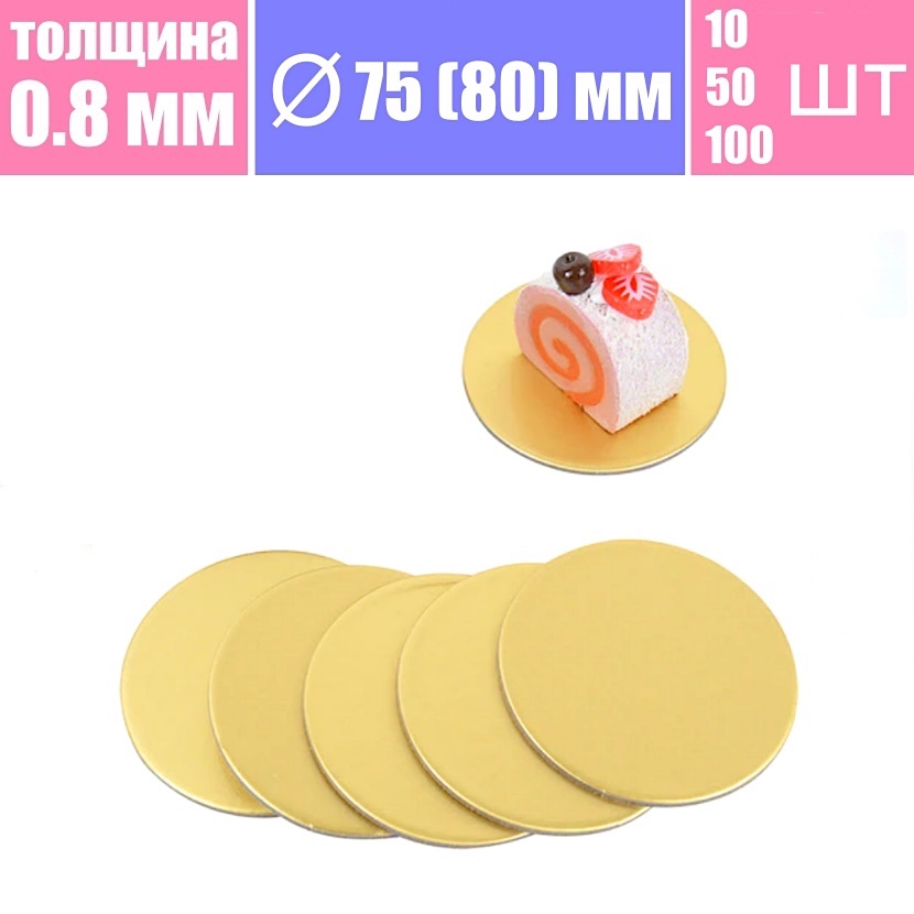 Подложка для пирожных Ø 75 мм 2х сторонняя ламинация золото/жемчуг, толщина 0.8 мм - купить. Розница от 10 шт, опт от 100 шт. Гарантия качества. Быстрая доставка по Москве, России и миру. Скидка на первый заказ и постоянным покупателям 5%. Ищите промокод для скидки на нашем сайте. Служба заказов: WhatsApp/Viber/Telegram +7(977)807-57-53