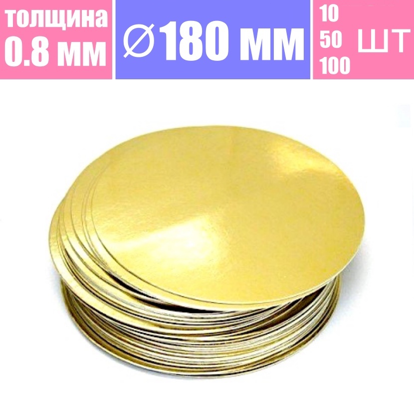 Подложка для торта Ø 180 мм 2х сторонняя ламинация золото/жемчуг, толщина 0.8 мм - купить. Розница от 10 шт, опт от 100 шт. Гарантия качества. Быстрая доставка по Москве, России и миру. Скидка на первый заказ и постоянным покупателям 5%. Ищите промокод для скидки на нашем сайте. Служба заказов: WhatsApp/Viber/Telegram +7(977)807-57-53