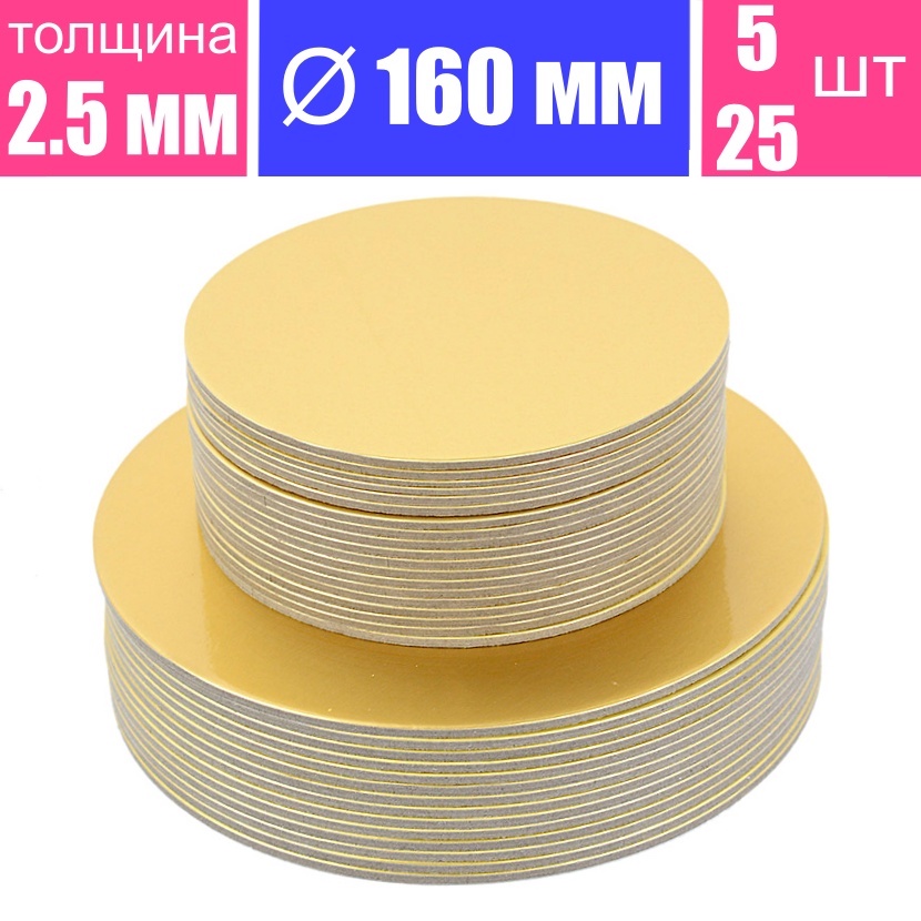 Подложка для торта усиленная толщина 2.5 мм, размер Ø 160 мм, ламинация золото - купить. Розница от 5 шт, опт от 25 шт. Гарантия качества. Быстрая доставка по Москве, России и миру. Скидка на первый заказ и постоянным покупателям 5%. Ищите промокод для скидки на нашем сайте. Служба заказов: WhatsApp/Viber/Telegram +7(977)807-57-53